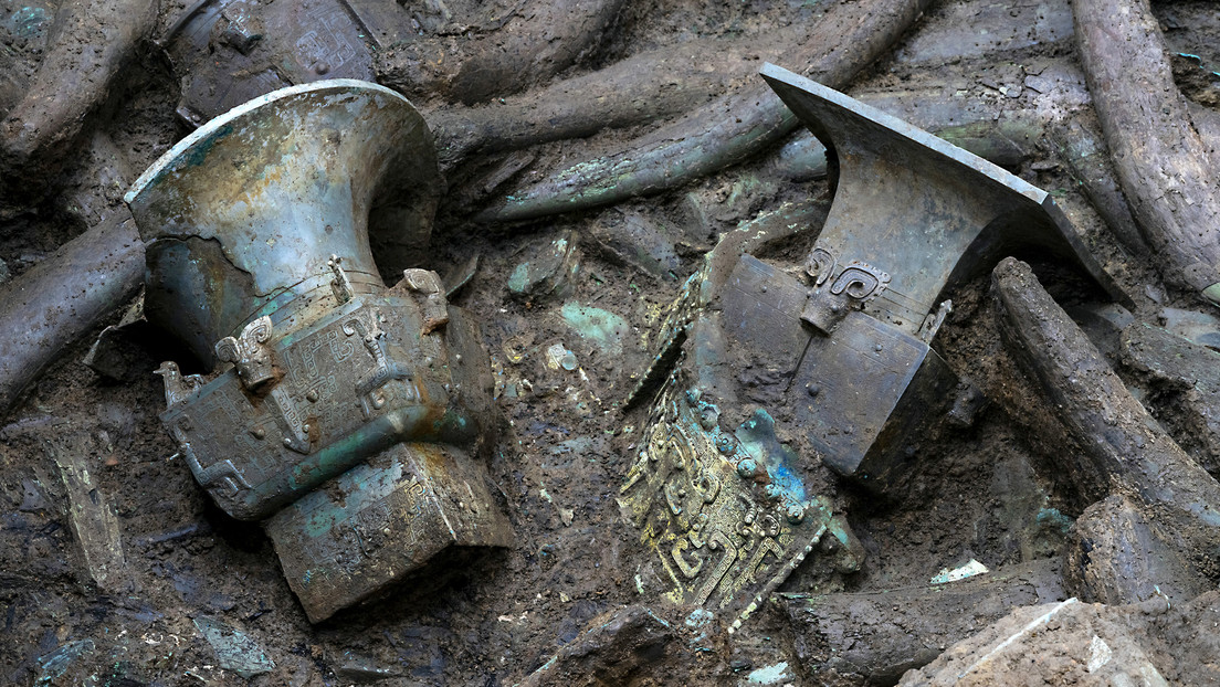 Archaeologists are still working on six newly found sacrificial pits in the Sanxingdui Ruins. Let's have a look at what was excavated on Sunday. #SanxingduiDiscoverypic.twitter.com/pl9aKJW6Wr
