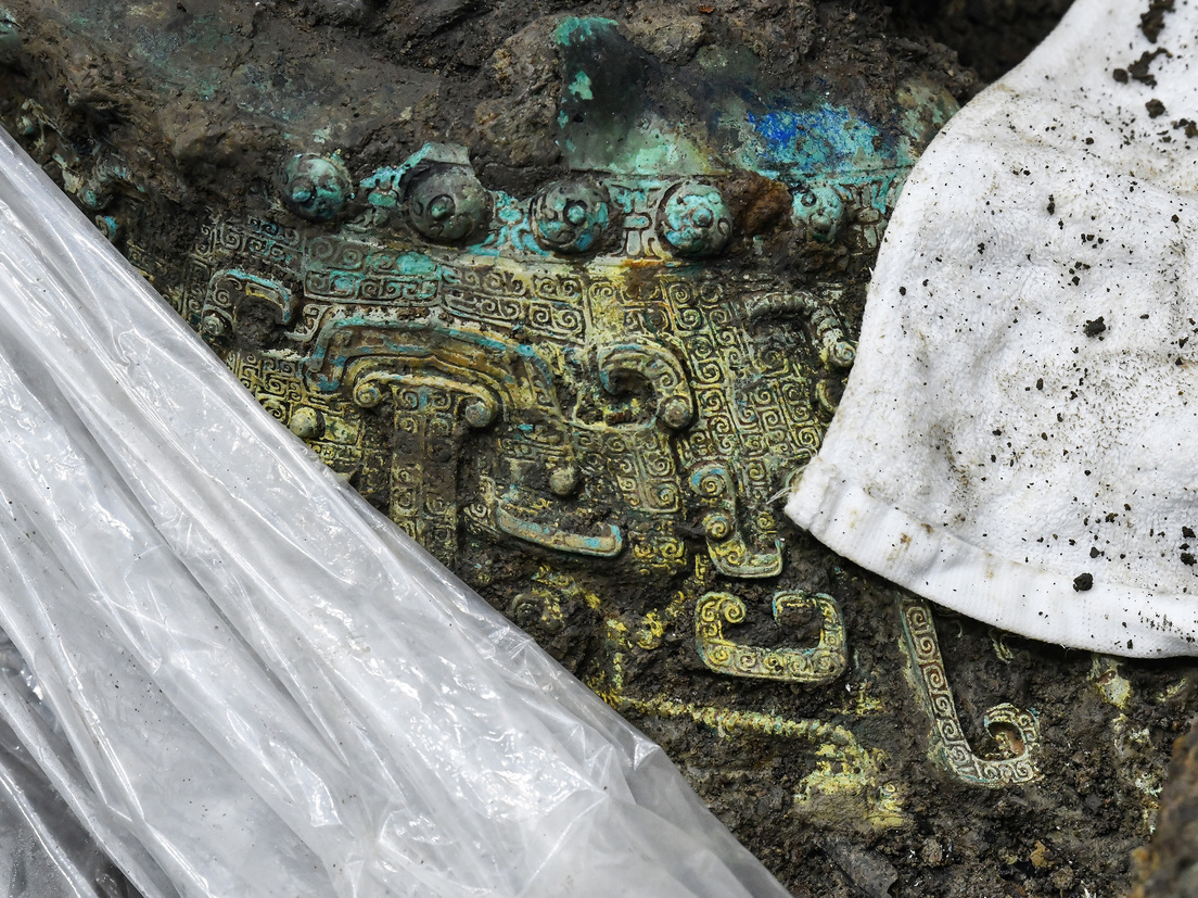 El fragmento de una máscara de oro de unos 3.000 años de antigüedad perteneciente a la cultura de Sanxingdui, una misteriosa civilización que se desarrolló en China durante la Edad de Bronce, ha sido hallado junto a otras 500 reliquias en un yacimiento arqueológico de Sanxingdui, en la provincia de Sichuan al suroeste de China, informan medios locales.