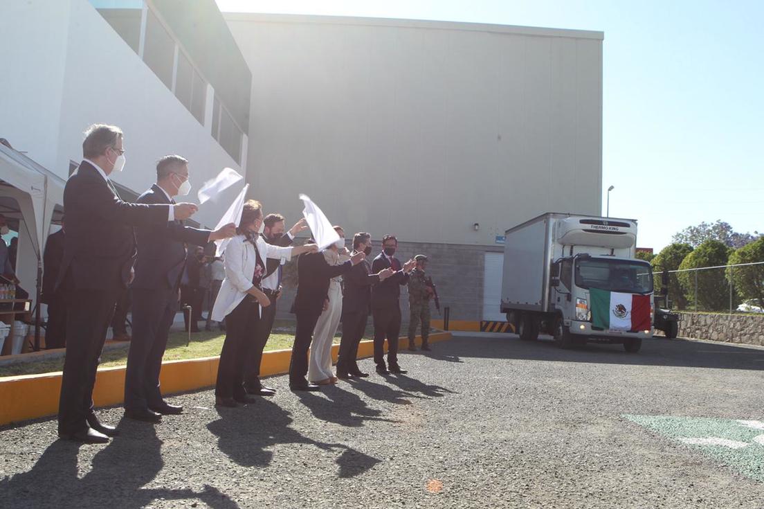 México dio el banderazo de salida al primer lote de la vacuna china CanSino contra el covid-19, que fue envasado en una planta nacional para su distribución en territorio mexicano.