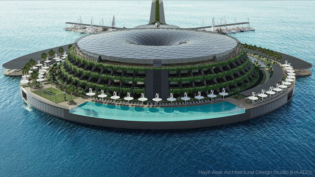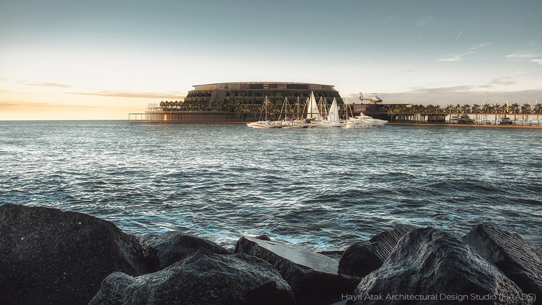 La compañía de arquitectura turca Hayri Atak Architectural Design Studio, con sede en Estambul, ha dado a conocer el proyecto de un "hotel ecológico flotante" de 152 habitaciones frente a la costa de Catar.