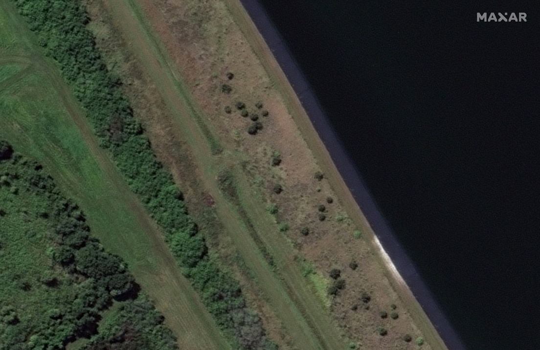 La empresa espacial Maxar Technologies difundió este martes imágenes satelitales que muestran el embalse con desechos líquidos de fosfato, ubicado en Florida, antes y después de detectar la semana pasada una brecha en una de sus paredes.