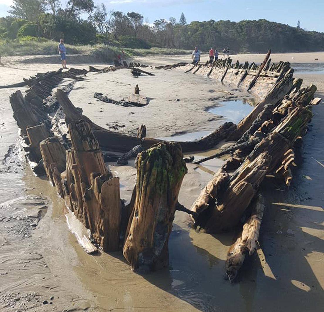 A finales de marzo las torrenciales lluvias barrieron la arena que cubría al barco y los residentes locales compartieron las imágenes en las redes sociales. Ese famoso naufragio está bajo protección de la Oficina de Medioambiente y Patrimonio de Nueva Gales del Sur, y es visible cada pocos años dependiendo de las mareas y precipitaciones, aunque la mayor parte del tiempo está bajo arena.