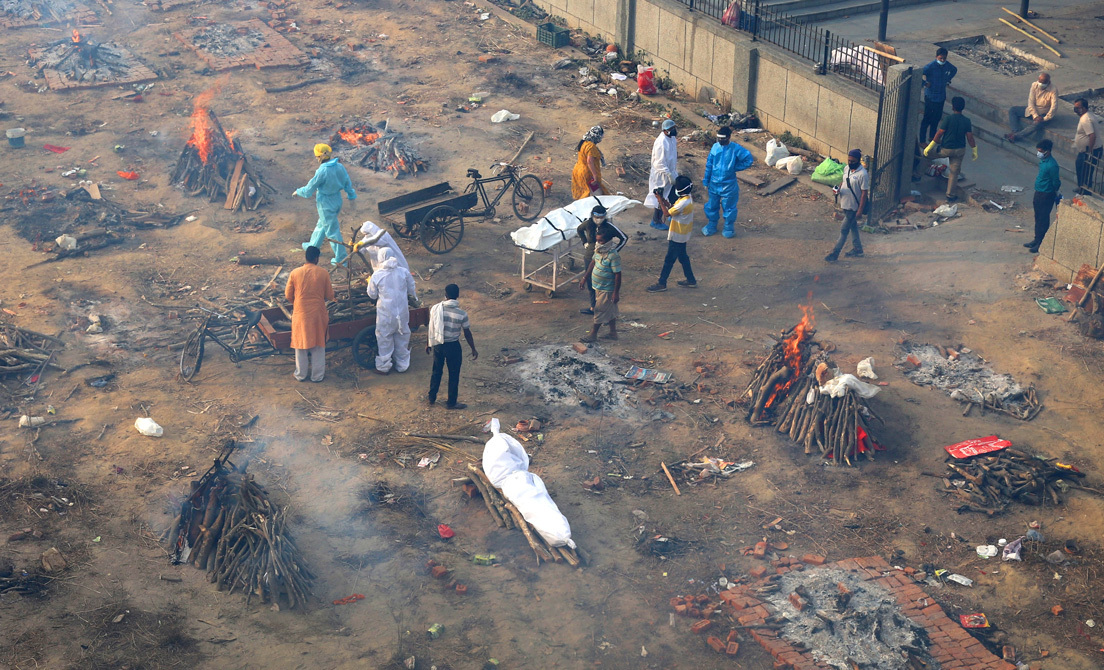 La quema de piras funerarias masivas en medio del desconsuelo de familiares con equipos de protección ilustra el impacto que está teniendo la nueva ola de coronavirus en la India, como se aprecia en una serie de fotografías compartidas por la agencia AP.