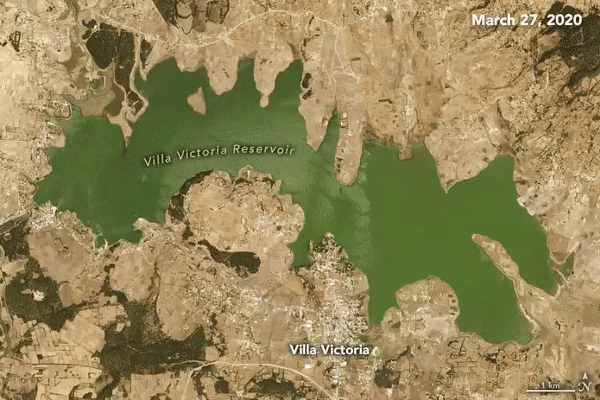 Imágenes satelitales reveladas por la NASA muestran como la falta de lluvias provoca una histórica sequía en México, que mantiene sus represas en niveles muy bajos. De acuerdo con los datos, el 15 de abril el 85 % del país atravesaba una crisis por falta de agua.