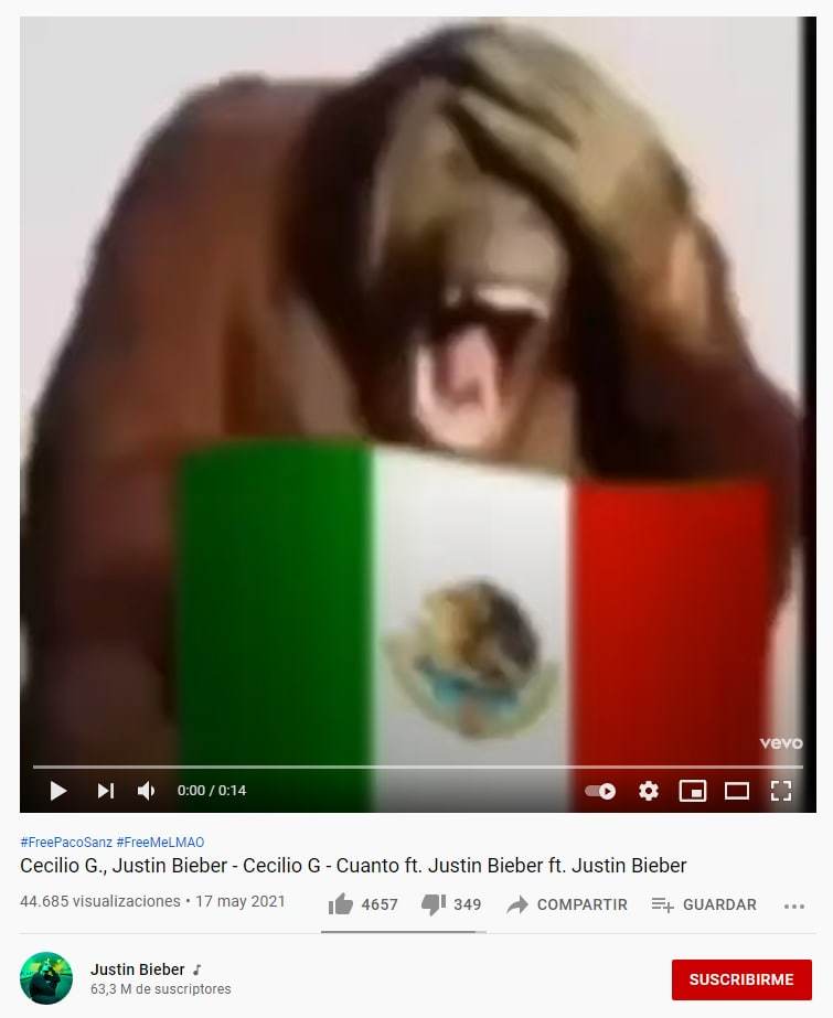 La grabación se llamaba 'Cecilio G., Justin Bieber - Cecilio G - Cuanto ft. Justin Bieber ft. Justin Bieber' y estaba acompañada con dos etiquetas. La primera reclamaba la liberación del español Paco Sanz, condenado en febrero por estafa tras pedir donaciones simulando estar al bordo de muerte a causa del síndrome Cowden. La segunda, FreeMeLMAO, puede ser traducida como "Libérenme que estoy riendo a carcajadas".