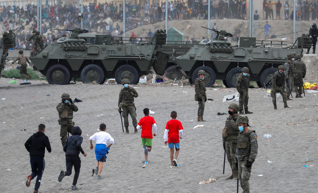 El pasado lunes, miles de migrantes cruzaron de manera sorpresiva la frontera entre Marruecos y Ceuta ante la falta de vigilancia de los cuerpos de seguridad del país alauí. El ministerio de Interior ordenó el envío de agentes de refuerzo y, ya en la madrugada, ante el continuo ingreso de personas, decidió desplegar al Ejército.