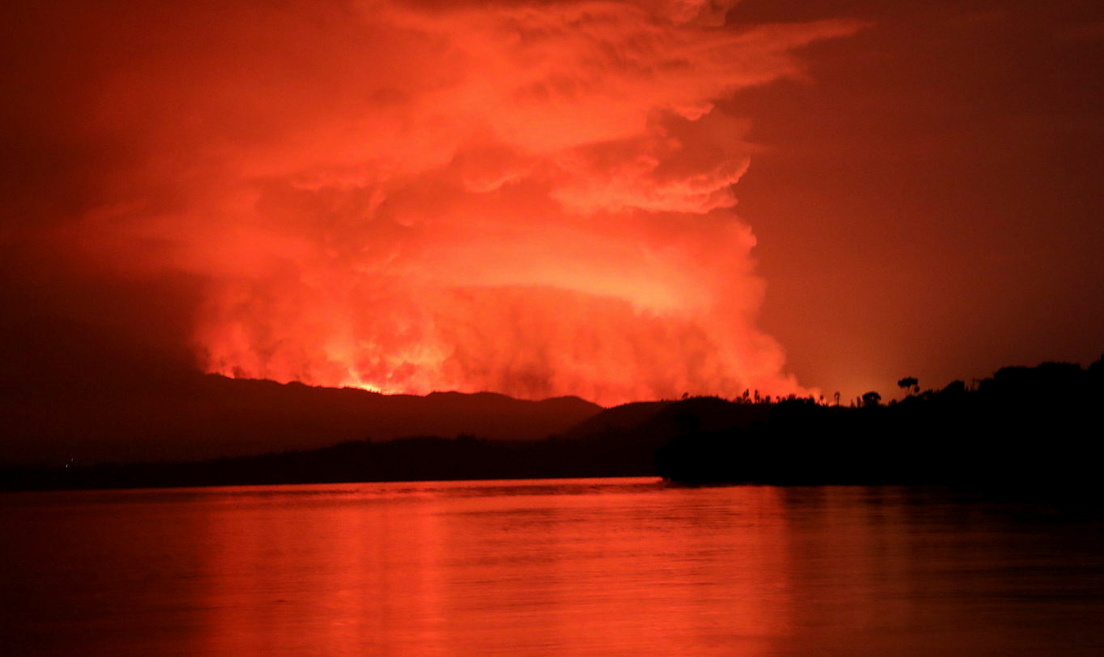Mientras el resplandor rojo teñía el cielo nocturno y flujos de lava destruían viviendas, miles de residentes cargados con colchones y otras pertenencias, huyeron a pie, muchos de ellos hacia la frontera con Ruanda.
