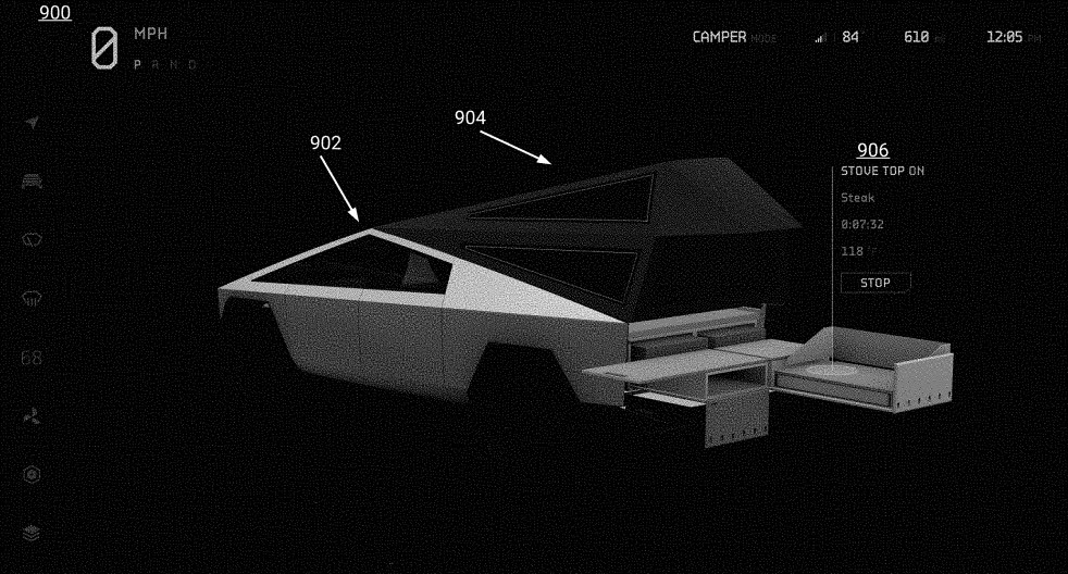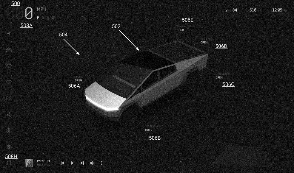 Una nueva solicitud de patente para la interfaz de usuario del Tesla Cybertruck ha revelado posibles nuevos accesorios y características de la camioneta eléctrica.