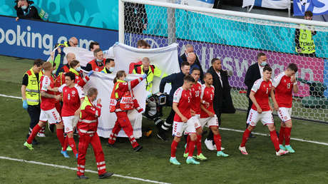 Durante el encuentro, Eriksen cayó al suelo y no pude levantarse. Los jugadores de Dinamarca formaron un círculo alrededor del personal médico para ofrecer privacidad. El deportista recibió asistencia de emergencia en la cancha durante unos 15 minutos, y luego lo trasladaron en una camilla fuera del campo de juego.