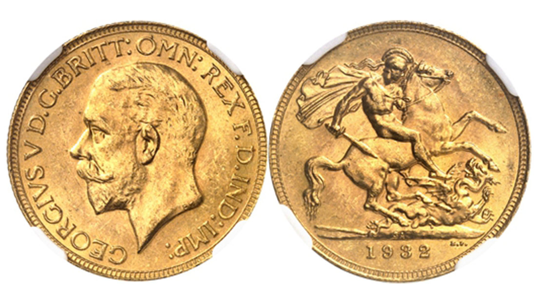 La segunda moneda pertenece al lote 123 y se trata de un soberano de oro del Rey Jorge V de Inglaterra. Fue acuñada en Sydney en 1920 y una de sus caras muestra una representación de San Jorge y el dragón, leyenda que probablemente dio origen a todos los cuentos de hadas con princesas y dragones en Occidente.