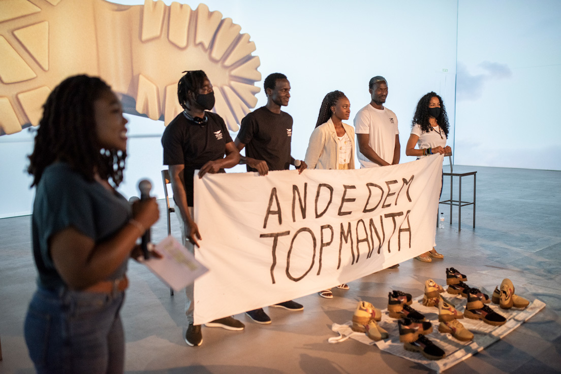 Los vendedores migrantes de Barcelona han dado un paso más en el camino que iniciaron hace seis años. Acaban de presentar su nueva línea de zapatillas que, bajo la marca Top Manta, han llamado Ande Dem, que significa 'caminar juntos' en wolof, una de las lenguas nativas de Senegal, país del que proceden la mayoría de los 'manteros', como se conoce popularmente a estos vendedores ambulantes.