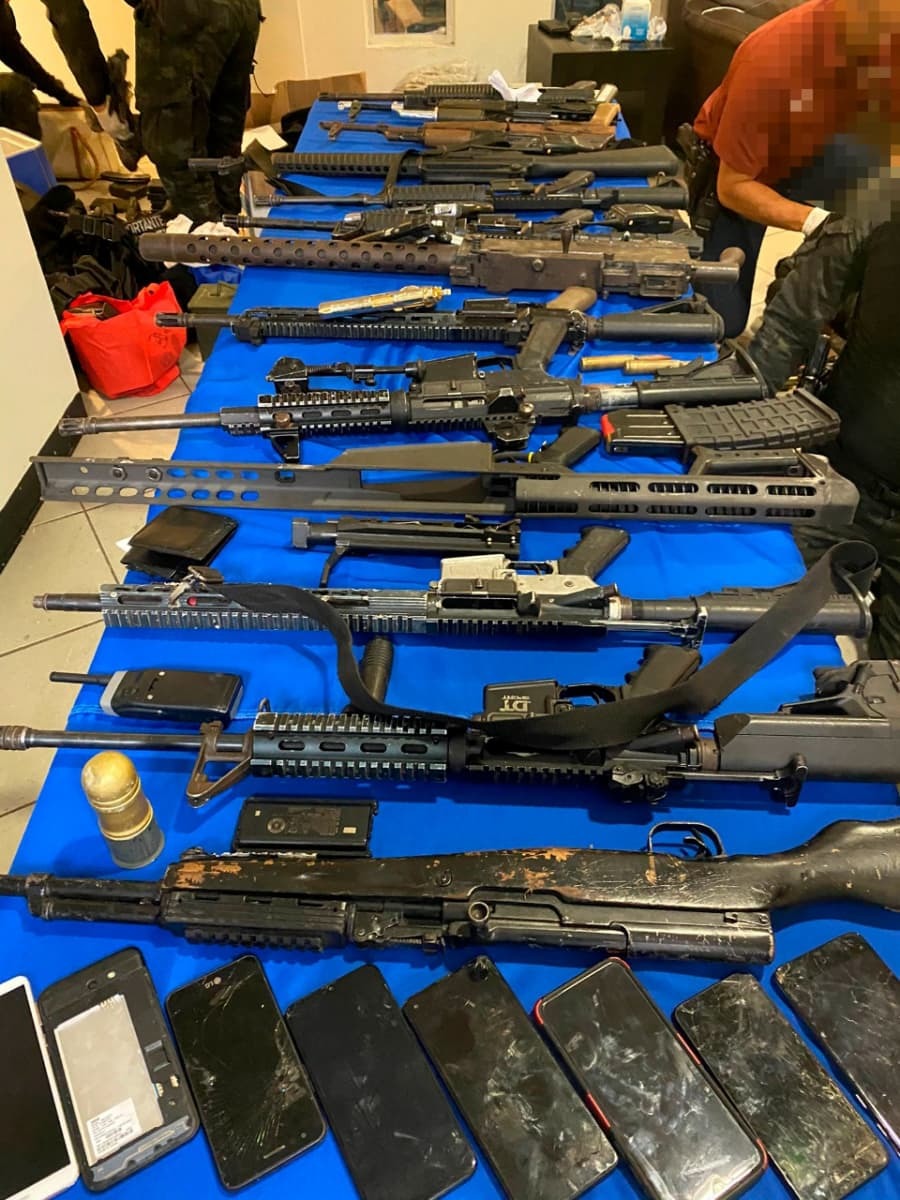 Asimismo, durante el operativo ejecutado por elementos del Grupo de Operaciones Especiales del estado fueron incautados ocho automóviles, 16 armas de diversos calibres, más de 3.900 cartuchos útiles, 80 cargadores, ocho chalecos antibalas, así como dos granadas, equipamiento táctico y un paquete con marihuana.