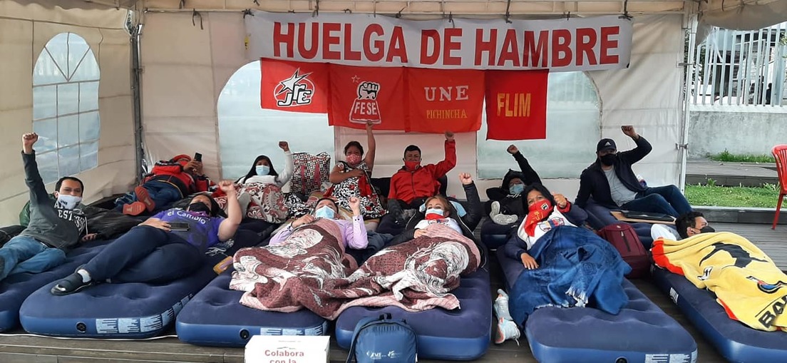 Miembros de la Unión Nacional de Educadores (UNE) de Ecuador realizan una huelga de hambre en varias ciudades del país en defensa de las reformas a la Ley Orgánica de Educación Intercultural (LOEI) y el pago de las compensaciones jubilares pendientes.