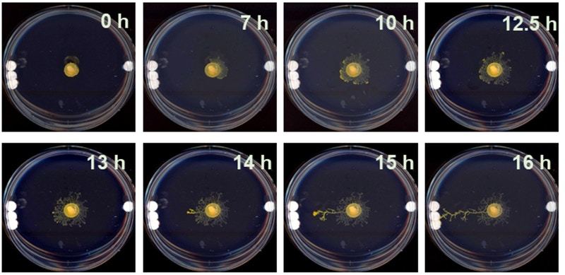 En su experimento, los investigadores colocaron muestras de 'Physarum polycephalum' en placas de Petri en un gel de agar semiflexible. En un lado de la placa se colocó un pequeño disco de vidrio, mientras que en el otro se colocaron tres discos juntos, uno al lado del otro. Luego dejaron que los organismos crecieran libremente en la oscuridad durante el transcurso de 24 horas y rastrearon sus patrones de crecimiento. Lo que descubrieron fue que durante las primeras 12 horas el moho del limo creció uniformemente en todas las direcciones, pero luego el 70 por ciento de las muestras empezaron a crecer hacia los tres discos en lugar de hacia el disco único.