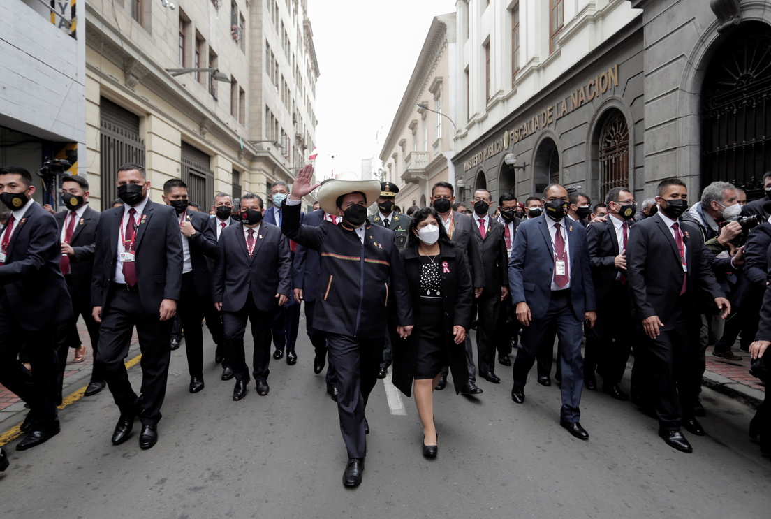 El líder sindical que se postuló como candidato del partido izquierdista Perú Libre comenzó así su gestión para el período 2021-2026 con la misión de controlar la pandemia del covid-19, reducir los índices de pobreza y dotar de certidumbre política a un país que vio desfilar a cuatro presidentes en tan solo cinco años.