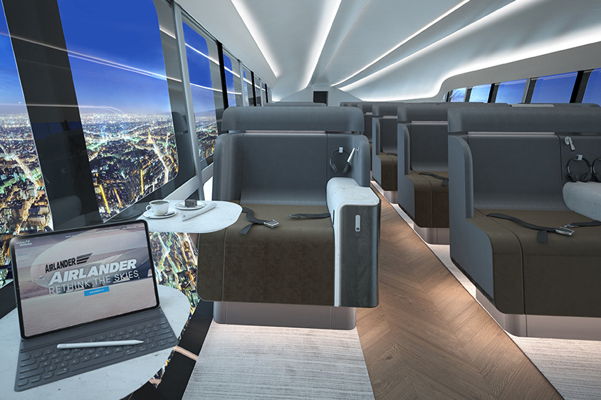 Tras una larga pausa, Hybrid Air Vehicles reveló a finales de mayo de este año el concepto del interior de la cabina de pasajeros del modelo comercial del dirigible, en el que —señalaron— podrán viajar hasta 100 personas. De acuerdo con el proyecto, el espacio contará con mullidos sillones posicionados de tal manera que cada pasajero tenga acceso al pasillo. Lo más impactante del diseño son sus grandes ventanales del piso al techo, que ofrecerán unas espectaculares vistas durante los vuelos.