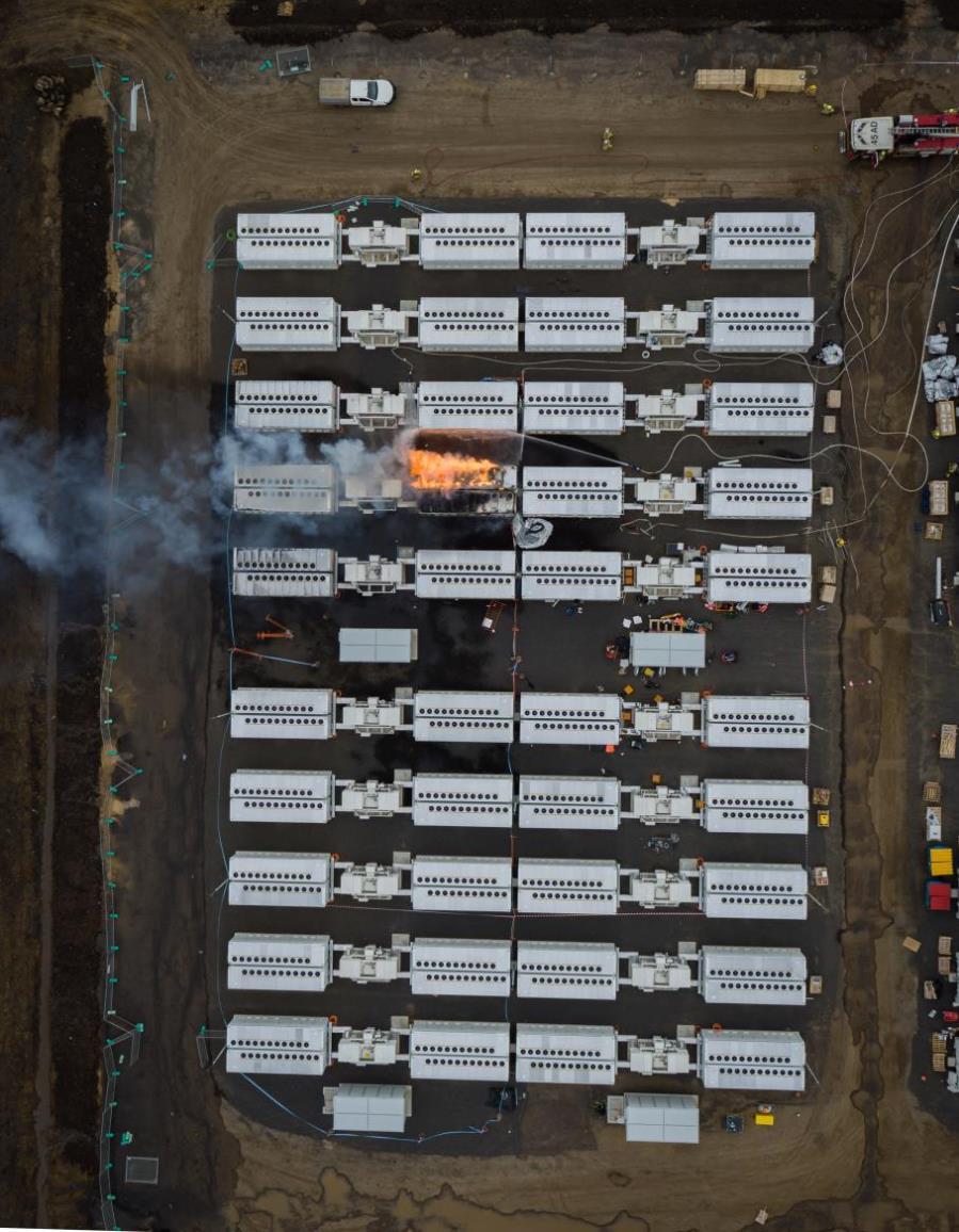 Una de las baterías Tesla Megapack, que forman el sistema de almacenamiento de energía Victorian Big Battery, cerca de Melbourne, se prendió fuego este viernes.