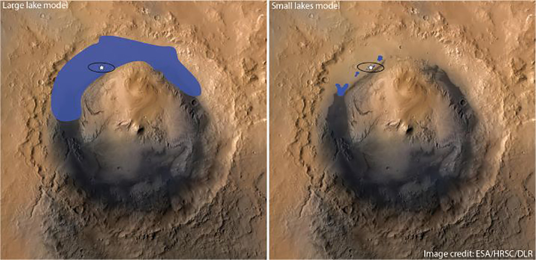 Y argumentan que solamente una ínfima parte de esos sedimentos cumple con las condiciones de haberse formado en el fondo de un lago —el cual, de acuerdo a esta hipótesis, sería de una superficie sustancialmente menor de lo que se creía—, mientras que el resto corresponde a polvo en la atmósfera marciana y ceniza volcánica que posteriormente fueron meteorizados por el efecto de lluvias y deshielos.