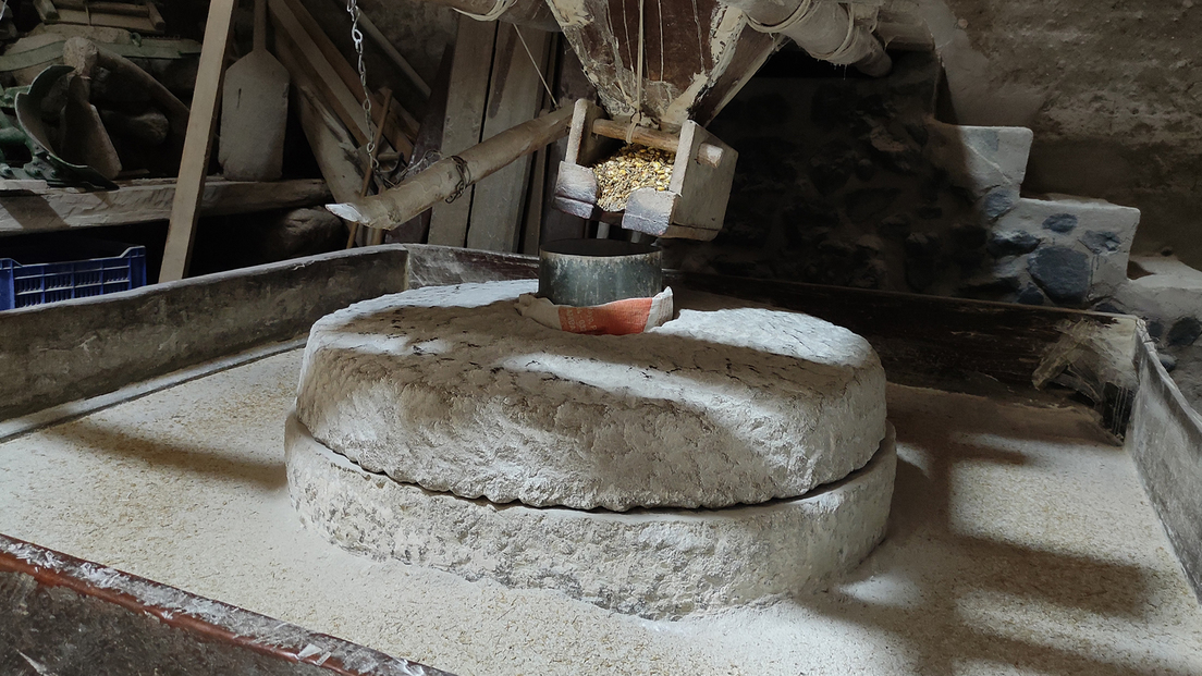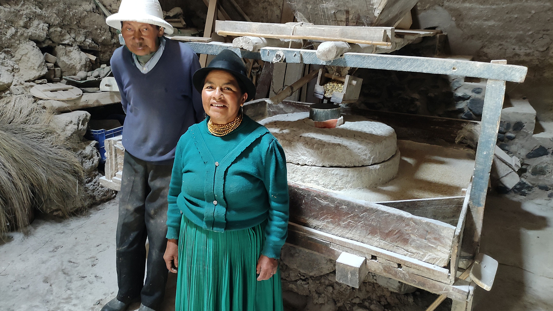 "Desde siempre y hasta ahorita mismo se muele el trigo, el maíz mezclado con cebada, la cebada, el morocho (un grano de mazorca de maíz mote, de color blanco, muy duro), la chuchuca (maíz a medio madurar), la jora (maíz germinado)", detalla Quimbiamba.