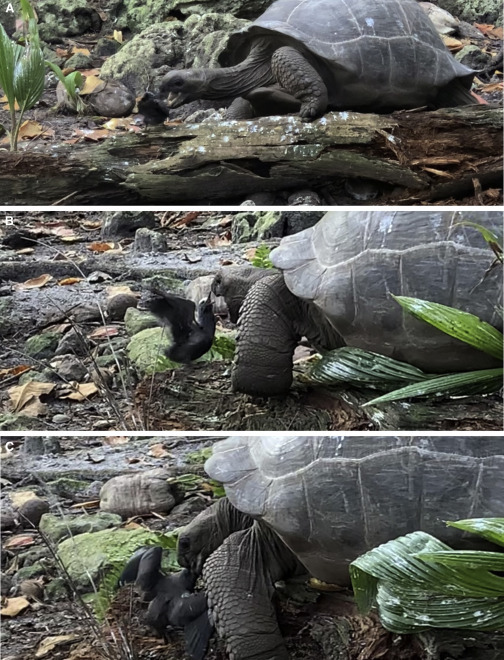 Según detallan Anna Zora y Justin Gerlach, autores de una investigación publicada este lunes en Current Biology, el incidente ocurrió en julio del año pasado en la isla de Fregate, en las Seychelles, después de que una cría de charrán común ('Anous tenuirostris'), que había caído de su nido, fue acechado lentamente por la tortuga, hasta finalmente ser devorado por esta.