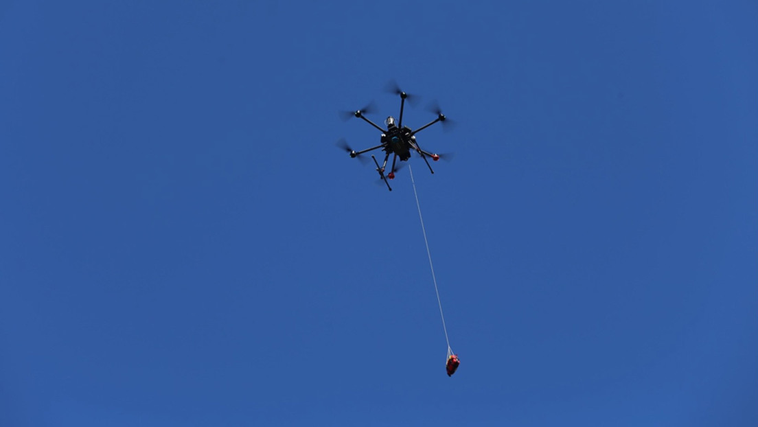 Por supuesto, era imprescindible que en el lugar de destino hubiera alguna persona que supiera manejar este equipo cuando el dron bajaba el cargamento desde unos 30 metros de altitud, sin aterrizar. Además, el equipo emitía sonidos para llamar la atención del público a su llegada.