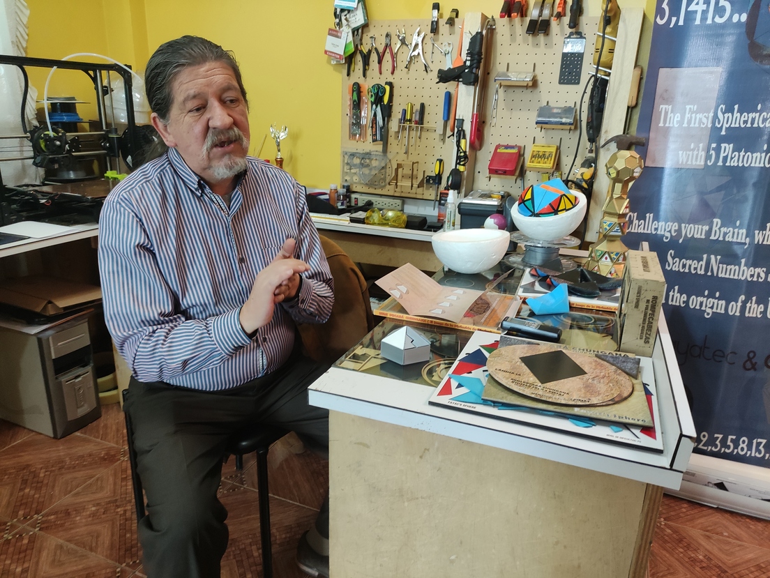 "Con esa idea está fabricada la esfera, entonces por eso tiene ese tamaño, no puede ser ni más grande ni más pequeña", dice el inventor, que indica, además, que su creación sigue la sucesión de Fibonacci —por el matemático italiano Leonardo Fibonacci—, una secuencia infinita de números naturales que a partir del 0 y el 1, se van sumando a pares, de manera que cada número es igual a la suma de sus dos anteriores.