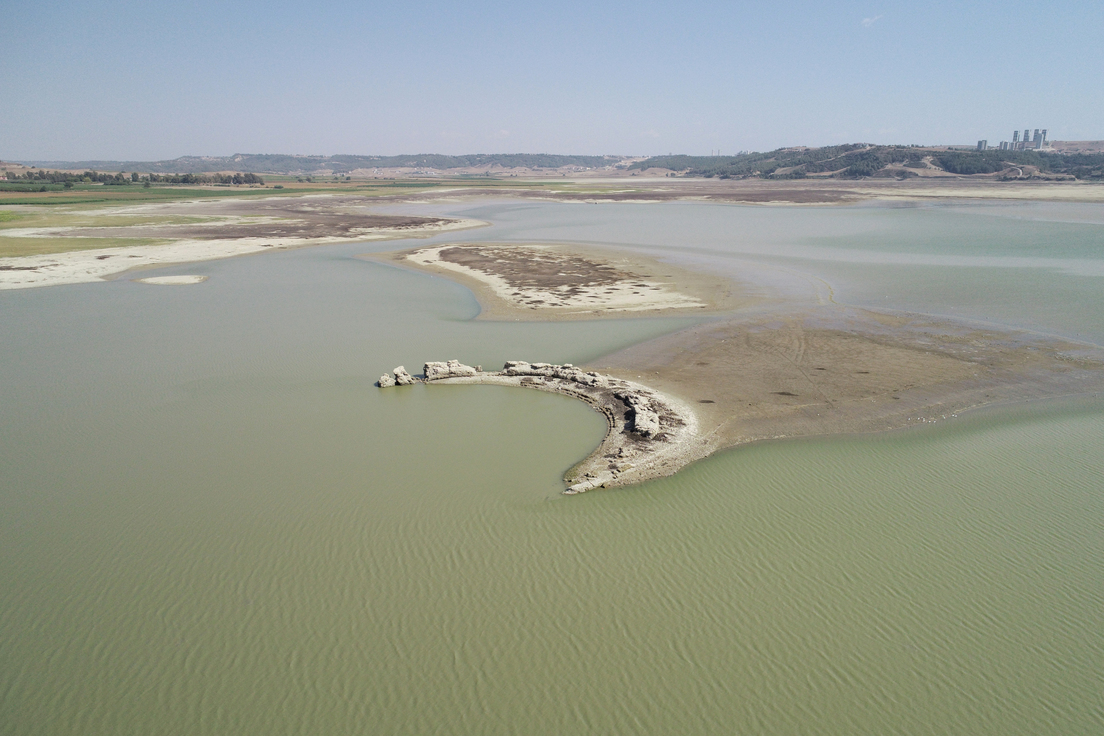 Una parte sumergida de la antigua ciudad romana de Augusta, cuya historia se remonta siglos atrás, ha resurgido después de que el nivel del agua del lago de Seyhan descendiera debido a la sequía en Adana, al sur de Turquía.