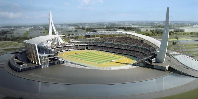 La infraestructura, ubicada en las afueras de la capital Nom Pen, posee la forma de un barco de vela y se espera que albergue los 32 Juegos del Sudeste Asiático en 2023.