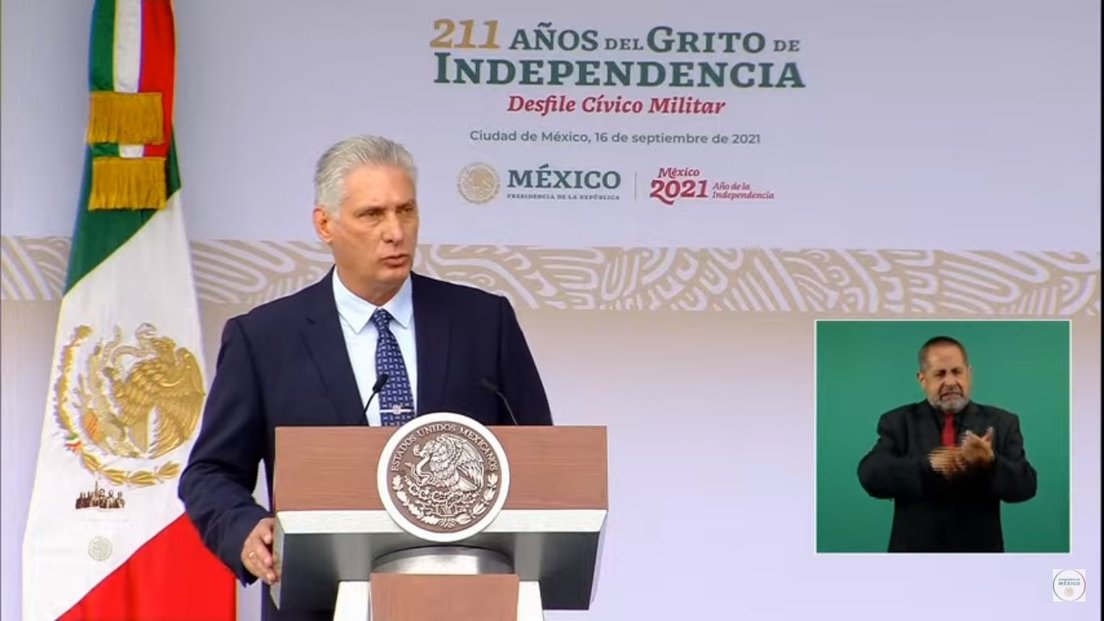 Previamente, Díaz-Canel agradeció por la invitación para participar en el desfile militar por un aniversario más de la Independencia de México.