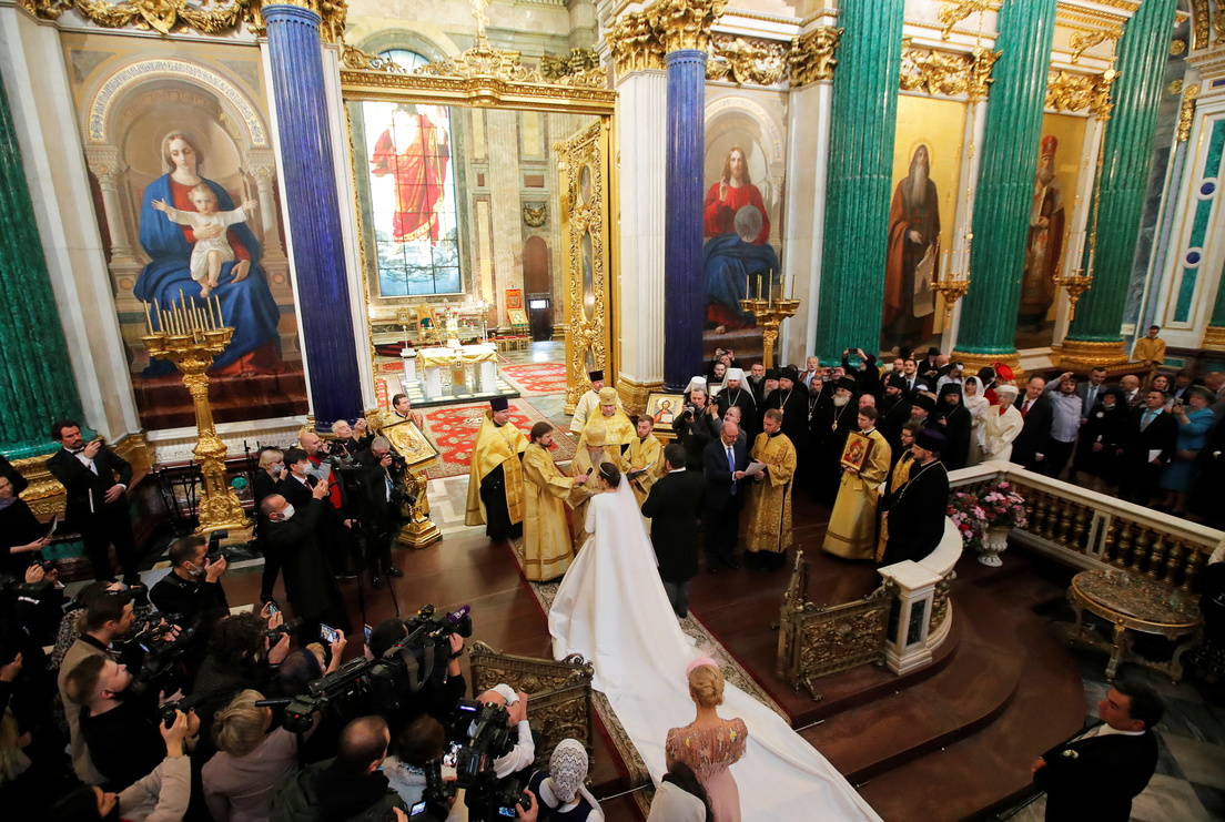 La primera ceremonia nupcial de un representante de la casa Románov que tiene lugar en el país en más de un siglo se celebró en la catedral de San Isaac.