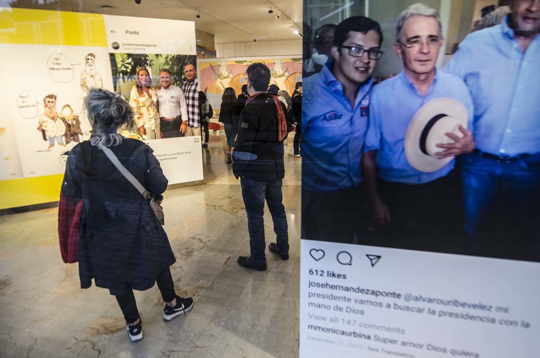Allí el espectador puede encontrarse con abundante material bibliográfico, hemerográfico, visual y audiovisual, además de contenidos de las redes y objetos sobre el tema. La muestra tiene la curaduría de Paula Leuro, Andrea Infante, Omar Rincón, X Andrade y Lucas Ospina.