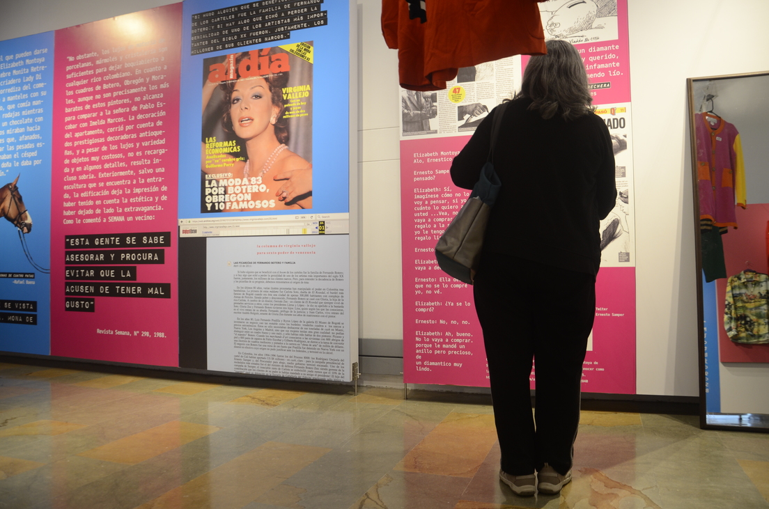 Más adelante hay un collage de personajes conocidos dentro de la vida colombiana entre los que se encuentran expresidentes, narcotraficantes, periodistas, políticos, 'influencers' y los propios curadores de la muestra. Se lee: "Bienvenido al club". A partir de allí las posibilidades son innumerables y se abarcan temas como los narcocorridos y un repaso por los titulares de prensa donde se refleja la violencia producto de la acción de los carteles de la droga entre los años 80 y 90.