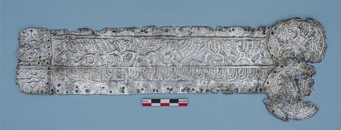 Una placa de plata con imágenes de seres míticos fue descubierta durante las excavaciones de un túmulo de la necrópolis escita Dévitsa V, en la región de Vorónezh, comunicó este viernes el Instituto de Arqueología de la Academia de Ciencias de Rusia (IA RAN, por sus siglas en ruso).