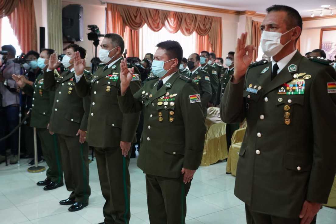 En el acto, Del Castillo y el comandante general de la Policía, Jhonny Aguilera, posesionaron al nuevo Estado Mayor del cuerpo policial boliviano y a los directores nacionales de la Fuerza Especial de Lucha Contra el Crimen (FELCC), contra la violencia (FELCV) y contra el narcotráfico (FELCN).