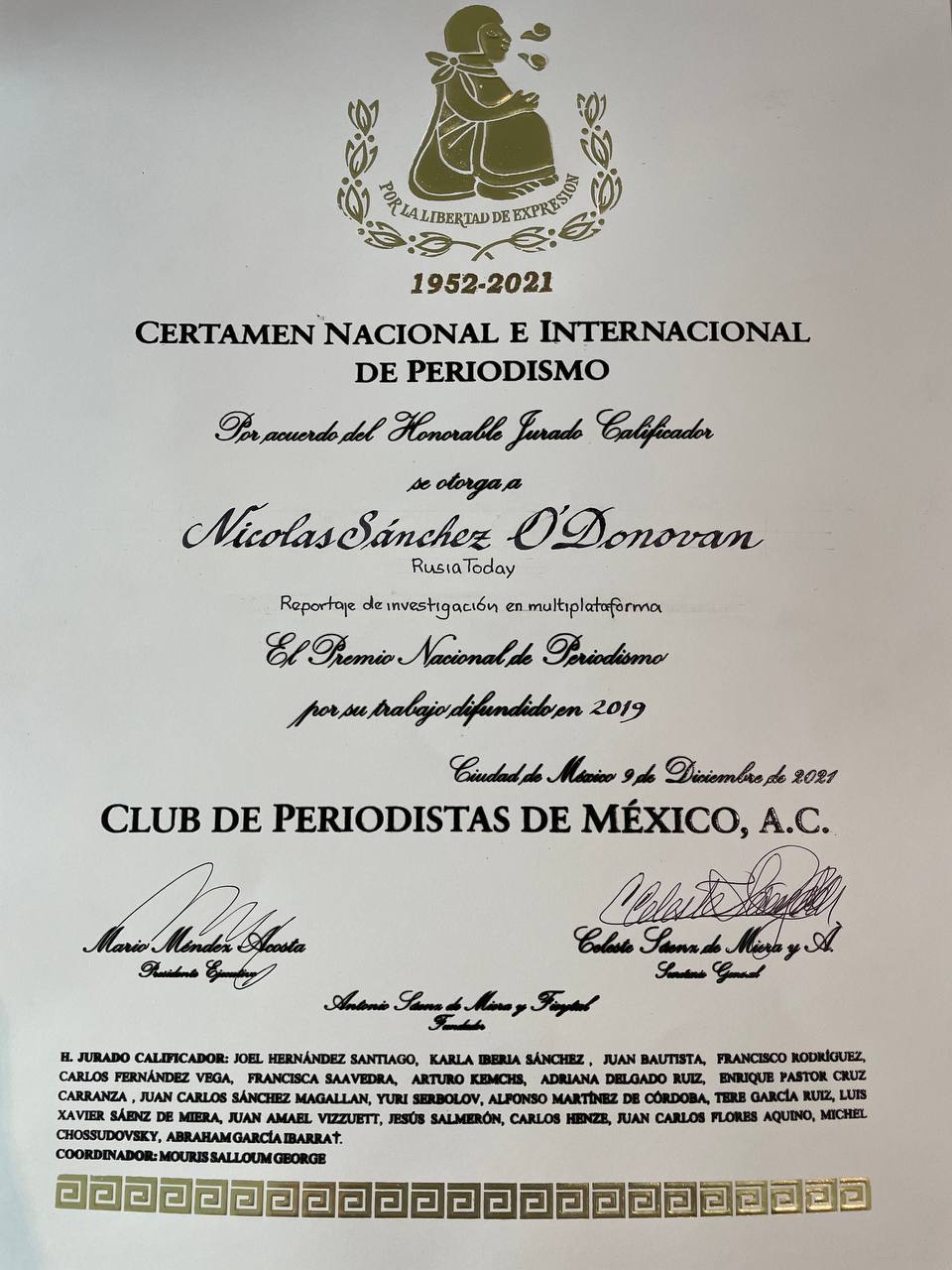 El Club de Periodistas de México ha destacado este jueves dos proyectos de RT en Español en el Certamen Nacional e Internacional de Periodismo.