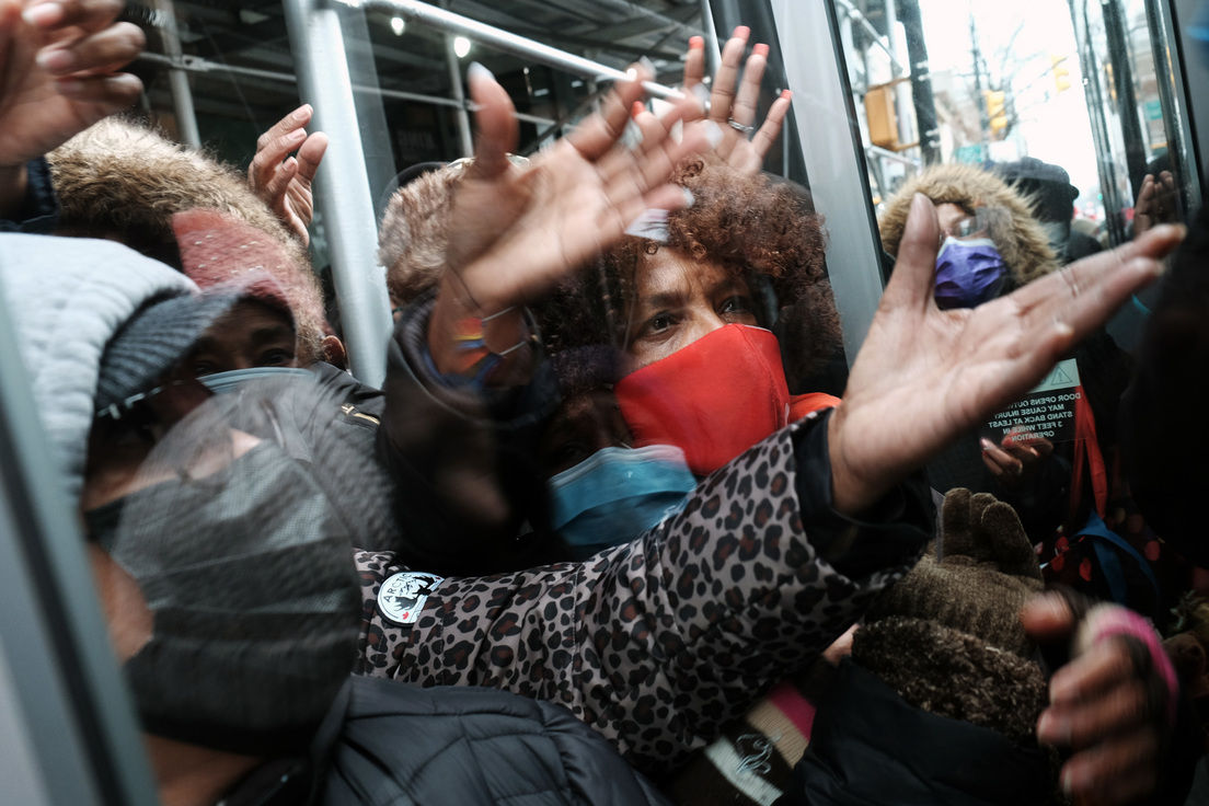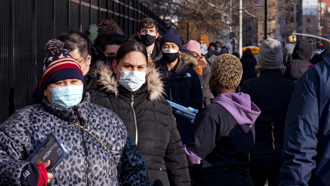 En medio del repunte de contagios por variante ómicron del coronavirus, se formaron largas colas en la avenida Flatbush ante uno de los cinco puntos de la ciudad donde los sanitarios repartían los tests, lo que desembocó en muchedumbres que no guardaban la distancia social.