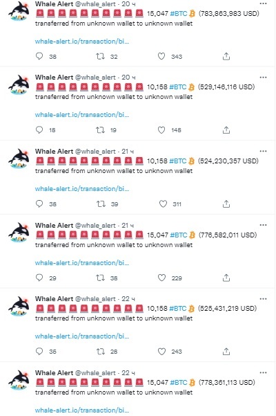 En las últimas 24 horas se han registrado seis transacciones de 75.615 bitcoines realizadas entre diferentes billeteras de esta divisa, según datos de Whale Alert, sistema de análisis de grandes movimientos de activos digitales. De acuerdo con el tipo de cambio actual del bitcóin, la suma equivale a unos 3.721 millones de dólares.