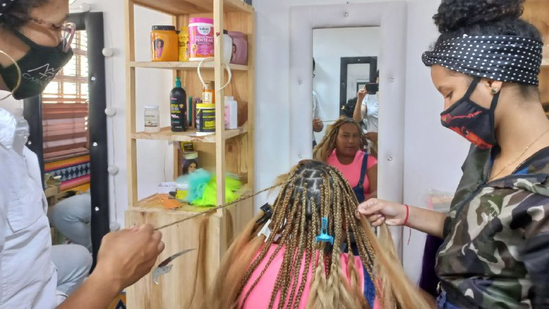 Afro Caracas se creó hace tres años, cuando solo era una tienda en línea con productos de belleza especializados. En noviembre de 2020 se inauguró un espacio físico, que comenzó a menos de una cuadra del lugar actual, donde están desde hace un año. Allí se realizan cortes de pelo, tratamientos capilares, trenzas y rastas sintéticas, entre otros.