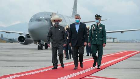 El presidente de Perú, Pedro Castillo, y su homólogo de Colombia, Iván Duque, sostuvieron este jueves su primer encuentro a propósito del VI Gabinete Binacional, en el que acordaron aumentar las inversiones, fortalecer la seguridad fronteriza, la lucha contra el narcotráfico y la corrupción, la trata de personas y tráfico ilícito de migrantes, la minería ilegal, entre otros objetivos.