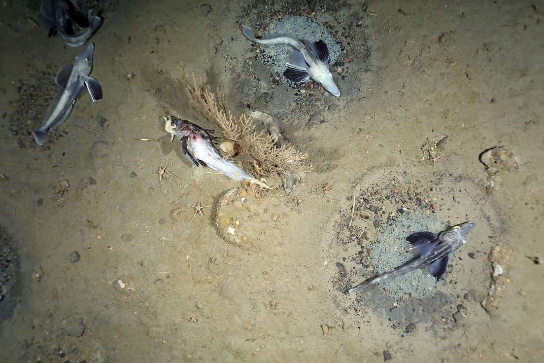 Al filmar esta práctica de anidación submarina desde un aparato de batimetría remolcado por el rompehielos Polarstern, los científicos pudieron calcular posteriormente que el número total de nidos activos en dicha superficie puede rondar los 60 millones, mientras que la biomasa asociada de peces podría superar las 60.000 toneladas.