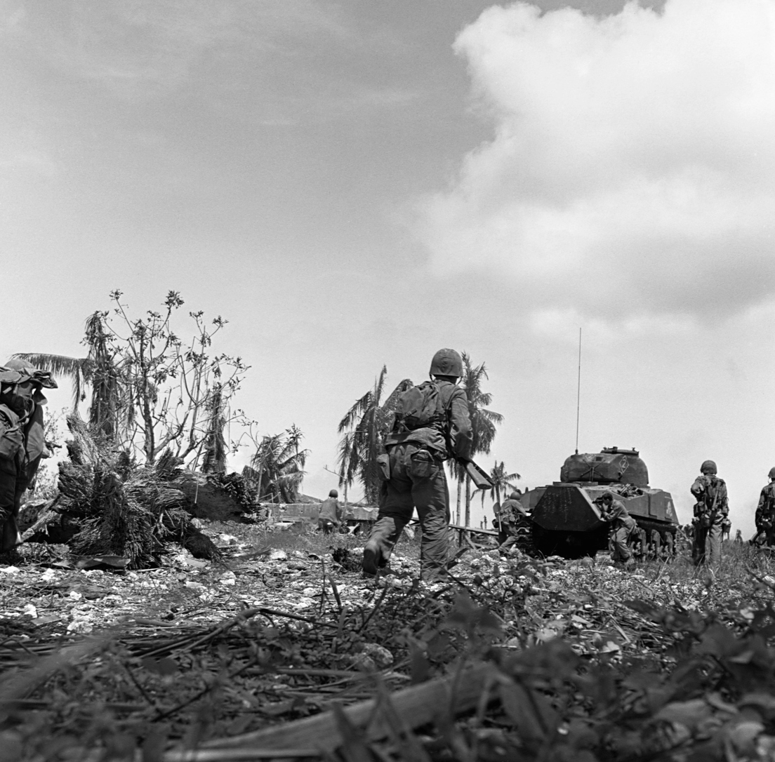 En julio de 1944, en un intento de reconquistar Guam, los estadounidenses lanzaron uno de los bombardeos navales previos al asalto más devastadores de la Segunda Guerra Mundial. Frente a 55.000 soldados enemigos, los japoneses fueron pronto derrotados.