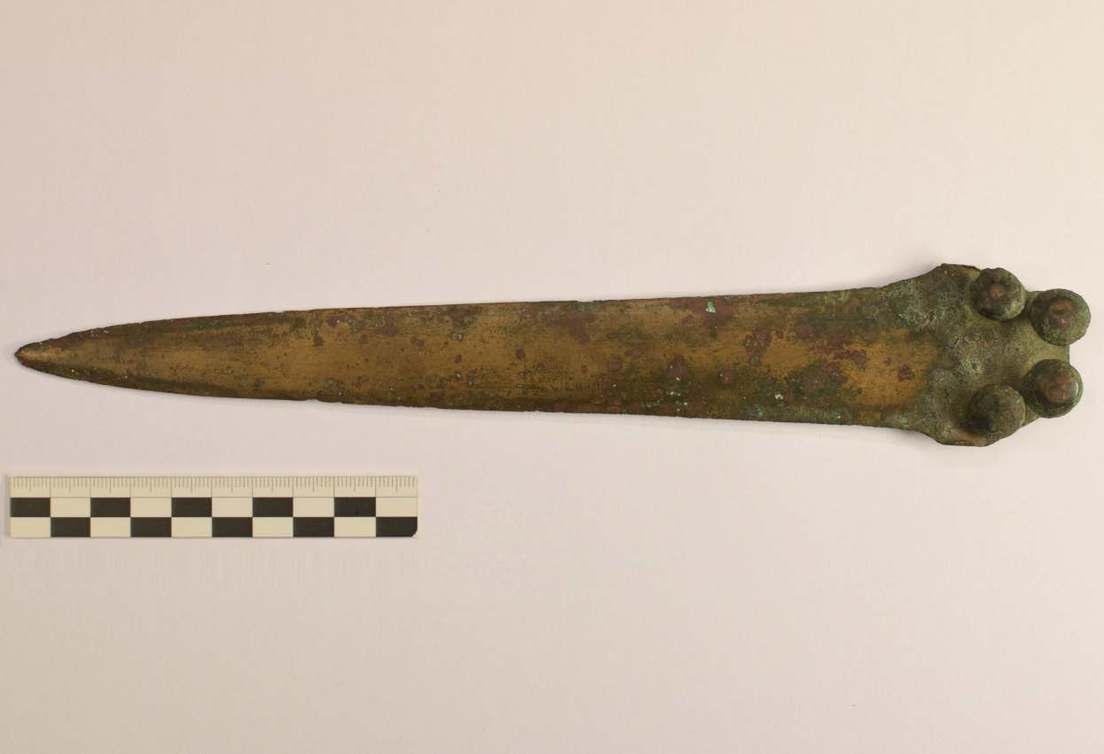 Un residente de Eslovaquia que disfrutaba de una jornada de descanso en las cercanías de la ciudad de Hlohovec, descubrió este verano una gran daga de bronce de casi 26 cm de largo.