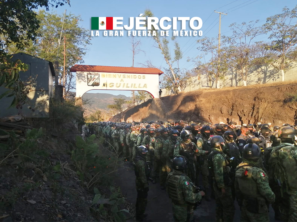 A continuación unidades de Paracaidistas, Fuerzas Especiales y de Infantería, con personal de la Guardia Nacional y de la Policía Michoacán, ingresaron desde diferentes itinerarios a la cabecera municipal de Aguililla.