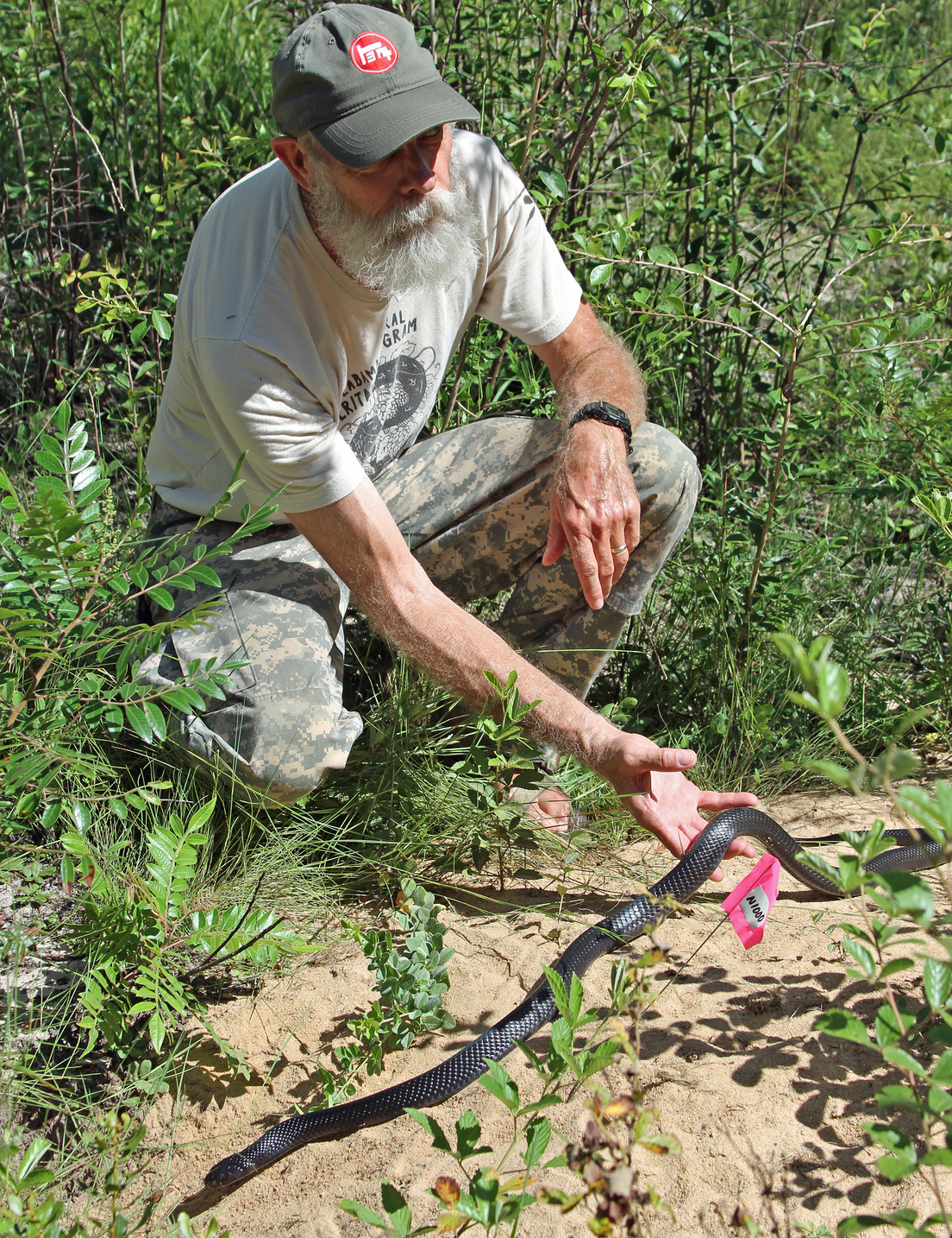 Este joven reptil es el resultado de un programa que busca restablecer la población de serpientes índigo oriental en su hábitat natural. La iniciativa comenzó en 2006, pero no fue hasta 2010 cuando se inició la liberación de 17 serpientes adultas criadas en cautiverio en el Bosque Nacional de Conecuh, estado de Alabama.