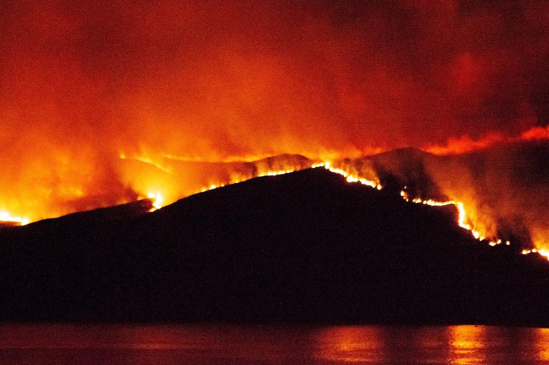 "Había una cadena de llamas alrededor de toda la circunferencia de la isla", dijo Nessie, una de las testigos, que tomó imágenes del incendio después de acercarse a la costa.