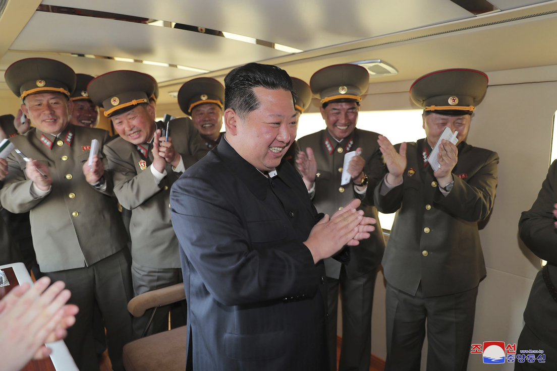 En las imágenes se observa el momento del lanzamiento, así como a Kim rodeado de militares que celebran el éxito del ensayo.