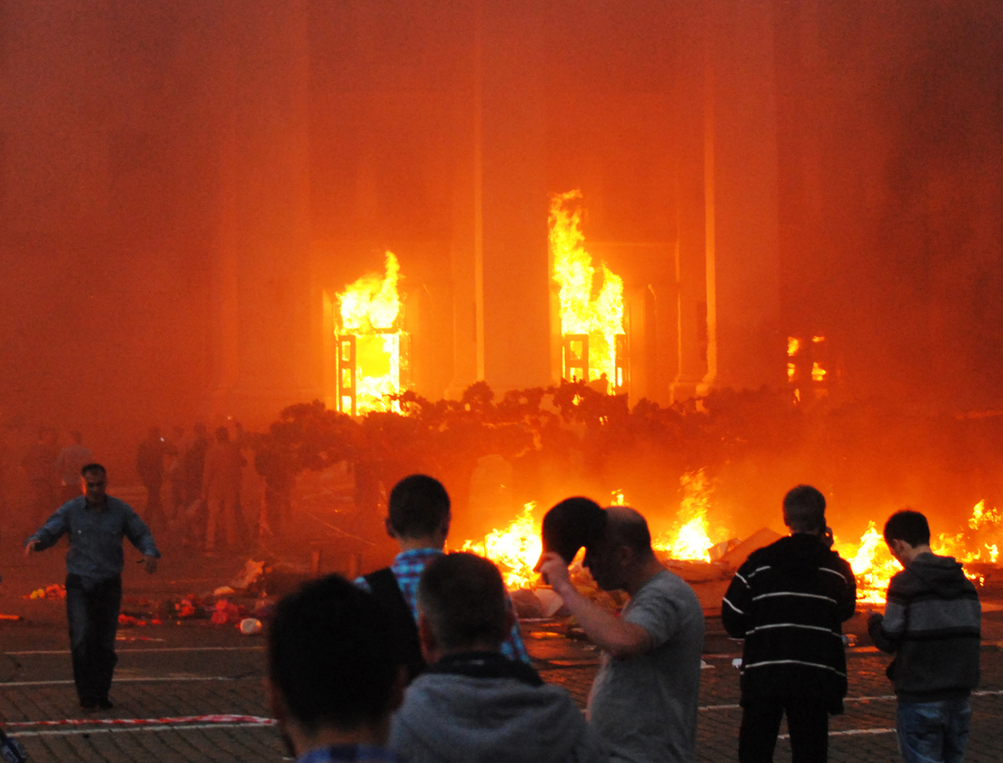 Los enfrentamientos duraron varias horas durante las cuales los nacionalistas y radicales perpetraron una sangrienta masacre con armas de fuego, cócteles molotov, cuchillos, palos y piedras. Decenas de manifestantes que estaban en contra del nacionalismo desenfrenado buscaron refugio en la Casa de los Sindicatos y muchos de ellos fueron quemados vivos luego de que el edificio fuera incendiado intencionalmente por los radicales.