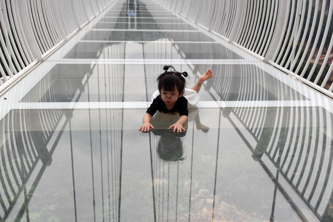 El puente está construido con tres capas de cristal templado de 40 milímetros de grosor, que pueden aguantar el peso de 450 personas.