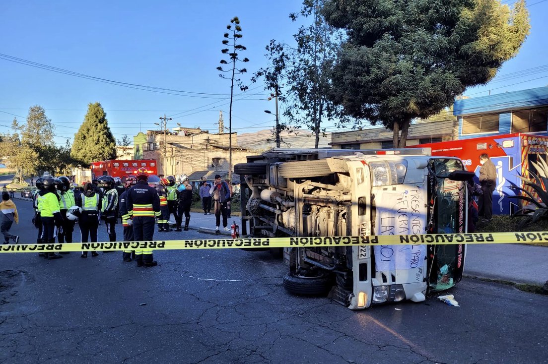 En horas de la mañana de este jueves, un camión con manifestantes se volcó al sur de la capital ecuatoriana, dejando un saldo de 12 heridos, que fueron atendidos por paramédicos del cuerpo de Bomberos.