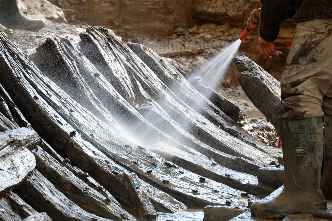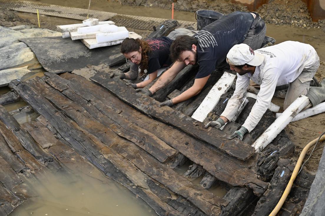 "Para limitar la degradación de la madera, especialmente en este momento, con la ola de calor en el suroeste de Francia, estamos regando los restos del naufragio cada 30 minutos", dijo Laurent Grimbert, quien dirige las excavaciones, a NBC News.